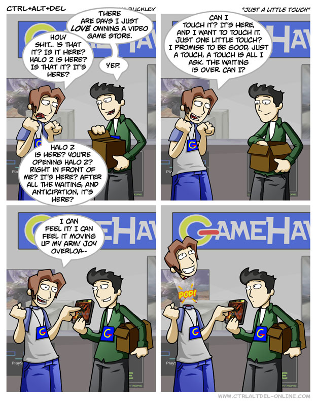 First Previous Random Next Last | 2 Share You are currently browsing the archive for Ctrl Alt Del First Previous Archive Random Next Last | 2 Share Tweet 24 Just a little touch November 8, 2004 by Tim Subscribe Notify of new follow-up comments new replies to my comments Label {} [+] Name* Email* Δ Label {} [+] Name* Email* Δ 2 Comments Oldest Newest Most Voted Inline Feedbacks View all comments MidnightDStroyer 7 years ago Joy-gasm! David L. 4 years ago well he gets that day off he wanted