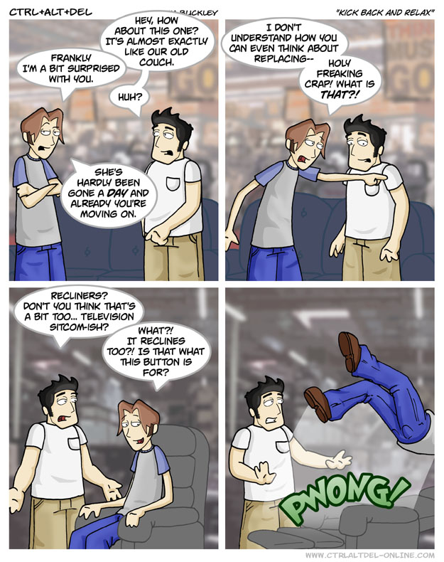 First Previous Random Next Last | 2 Share You are currently browsing the archive for Ctrl Alt Del First Previous Archive Random Next Last | 2 Share Tweet 24 Kick back and relax July 26, 2003 by Tim Subscribe Notify of new follow-up comments new replies to my comments Label {} [+] Name* Email* Δ Label {} [+] Name* Email* Δ 2 Comments Oldest Newest Most Voted Inline Feedbacks View all comments MidnightDStroyer 7 years ago I guess he had to learn the hard way…The lever on the side is for reclining, the button is the James-Bond-style to Eject. Intrepyd45 4 years ago I can hear this comic, and it sounds exactly like the spring powerup from Sonic the Hedgehog