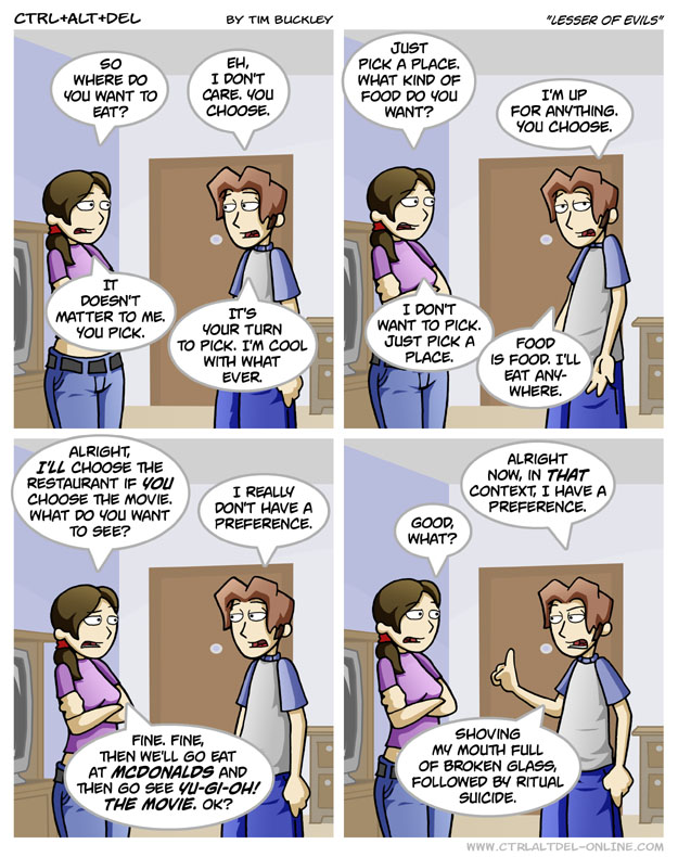 First Previous Random Next Last | 3 Share You are currently browsing the archive for Ctrl Alt Del First Previous Archive Random Next Last | 3 Share Tweet 24 Lesser of evils August 13, 2004 by Tim Subscribe Notify of new follow-up comments new replies to my comments Label {} [+] Name* Email* Δ Label {} [+] Name* Email* Δ 3 Comments Oldest Newest Most Voted Inline Feedbacks View all comments Trekris Michaels 2 years ago I like YuGiOh: The Movie. human 2 years ago Reply to Trekris Michaels fuck you Rie 2 years ago Reply to Trekris Michaels FUCK you..