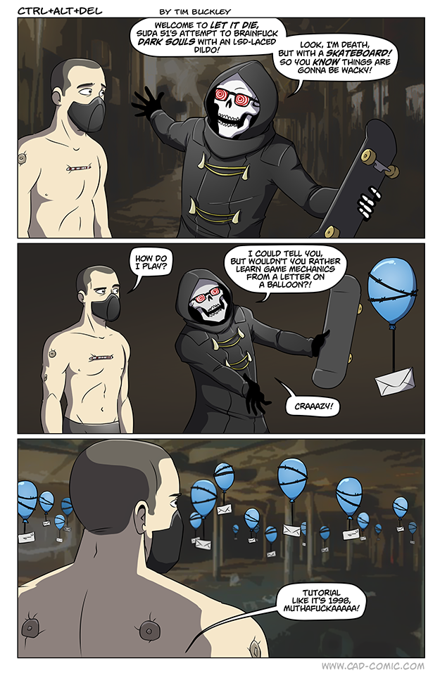 First Previous Random Next Last | 3 Share You are currently browsing the archive for Ctrl Alt Del First Previous Archive Random Next Last | 3 Share Tweet 24 Let It End January 6, 2017 by Tim Subscribe Notify of new follow-up comments new replies to my comments Label {} [+] Name* Email* Δ Label {} [+] Name* Email* Δ 3 Comments Oldest Newest Most Voted Inline Feedbacks View all comments MidnightDStroyer 7 years ago It just might help if the envelopes were at least marked with numbers so that you know what order you need to read them…Just might. VioletKnight_XOX 7 years ago *Death the Kid appears* ‘hey, I had a skateboard first.’ Gaelex 4 years ago So this is Saw The Game but they did not have the money to pay the license rights?