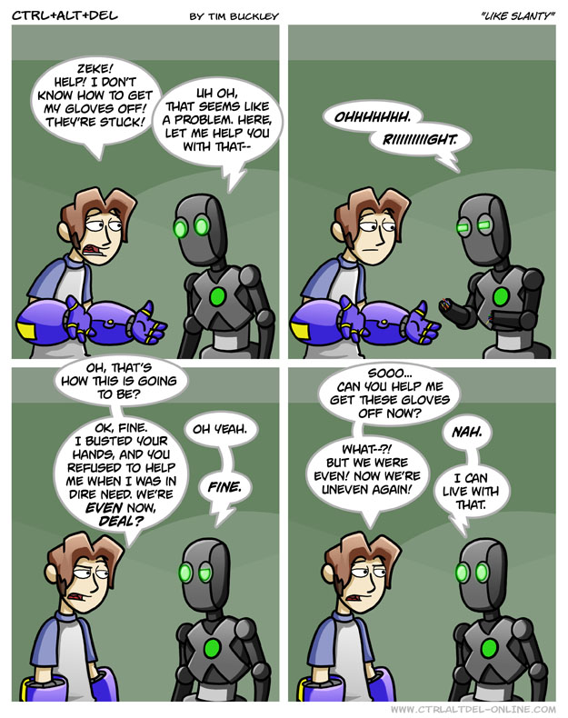 First Previous Random Next Last | 1 Share You are currently browsing the archive for Ctrl Alt Del First Previous Archive Random Next Last | 1 Share Tweet 24 Like slanty April 20, 2007 by Tim Subscribe Notify of new follow-up comments new replies to my comments Label {} [+] Name* Email* Δ Label {} [+] Name* Email* Δ 1 Comment Oldest Newest Most Voted Inline Feedbacks View all comments Talis 3 years ago You’re not even, you’re odd!