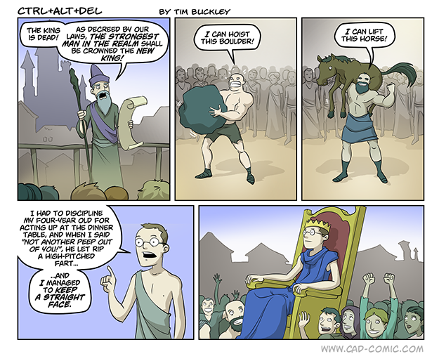 The struggle is real! This comic made my morning. I have an 11 year old, 9 year old, and 4 year old. All boys. You can imagine how hard it is. The bonus is the 4 year old tries so hard to be like his big brothers, so he picks up on everything they do/say/watch. So they will say something inappropriate, and then the 4 year old will immediately repeat it, and then you are trying not to laugh while scolding both of them and thinking “he’s gonna have some great memories of all the bad stuff his older brothers… Read more »