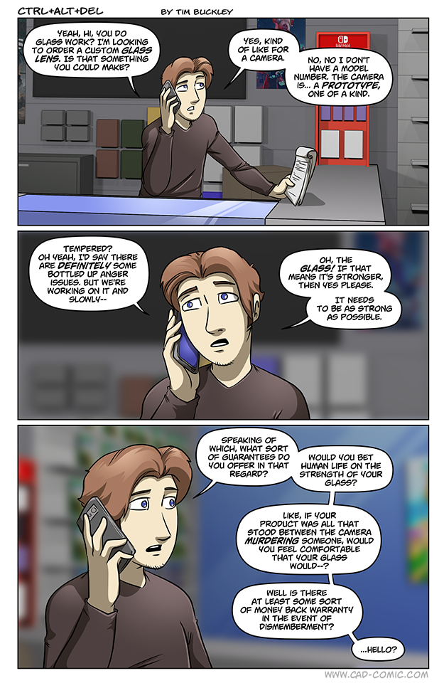 I have to imagine that in a world with super villains and eldritch horrors, this glass maker has to assume “ok, this fella is building a murder bot. No thanks.”