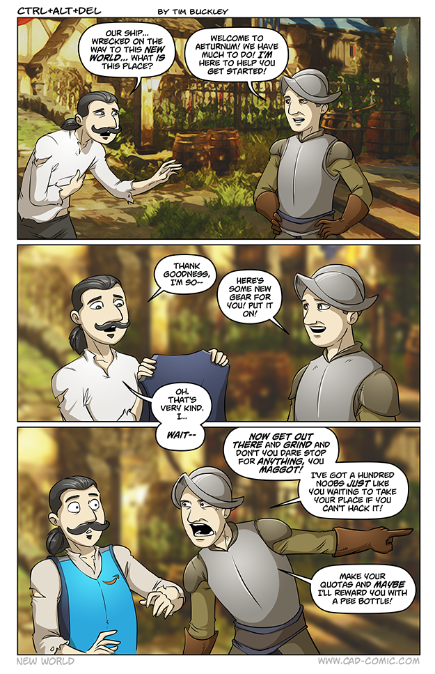 MMOs and Amazon: it’s like it was meant to be. I mean, if there’s one company out there that has experience pressuring people into doing long hours of repetitive tasks for meager rewards…