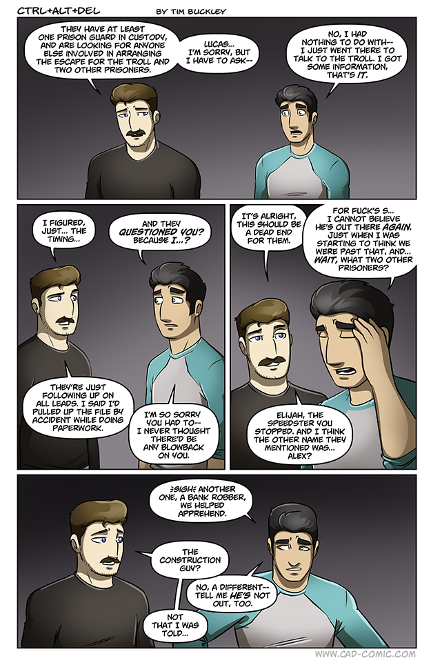 For those reading who don’t remember Alex, Alex Nguyen, otherwise known as the Black Hat, was a 20~ year old bank robber born with Symbrachydactyly (A condition in which a hand has underdeveloped fingers) who used a mechanical glove to become intangible (Source for the age and condition being 02.22 here: https://cad-comic.com/comic/analog-and-d-pad-02-22/). He was introduced as a more minor antagonist before the introduction of the Troll, initially cheating at a game tournament sponsored by Gamehaven under the name SunderX, revealing his abilities and tendency to use those abilites to get ill-gotten gains to support himself and his family. Apologies if… Read more »