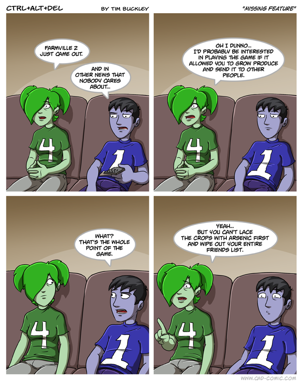 First Previous Random Next Last | 2 Share You are currently browsing the archive for Ctrl Alt Del First Previous Archive Random Next Last | 2 Share Tweet 24 Missing feature September 7, 2012 by Tim Subscribe Notify of new follow-up comments new replies to my comments Label {} [+] Name* Email* Δ Label {} [+] Name* Email* Δ 2 Comments Oldest Newest Most Voted Inline Feedbacks View all comments MidnightDStroyer 7 years ago Talk about a way to express “unlike.” Narnian 2 years ago All of the players are twisted. 4 though is at an entirely different level than the rest.