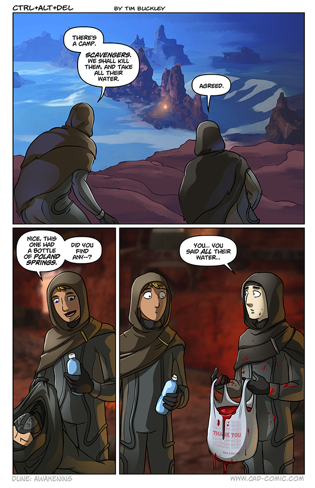 There were “death stills” which were big bags/”coffins” that would dessicate the body and harvest the water. Probably some kind of combination thing where the blood would be drained and distilled into water and then the same with the body tissue. I guess as things go… its not something to complain about as you’re probably dead before you go into it and wont really know anything about it. BUT i think that as a measure of torture I think enemies were put into the death stills, alive and aware. I dont think that’d be a good way to go –… Read more »