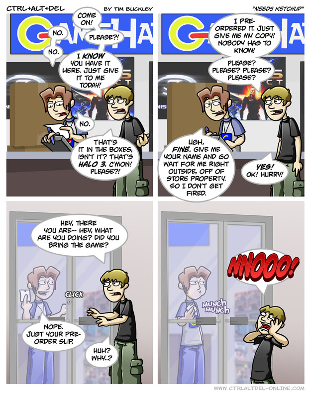 First Previous Random Next Last | 1 Share You are currently browsing the archive for Ctrl Alt Del First Previous Archive Random Next Last | 1 Share Tweet 24 Needs ketchup September 24, 2007 by Tim Subscribe Notify of new follow-up comments new replies to my comments Label {} [+] Name* Email* Δ Label {} [+] Name* Email* Δ 1 Comment Oldest Newest Most Voted Inline Feedbacks View all comments Arceus 7 years ago Maybe some salt from his tears would be nice on that slip