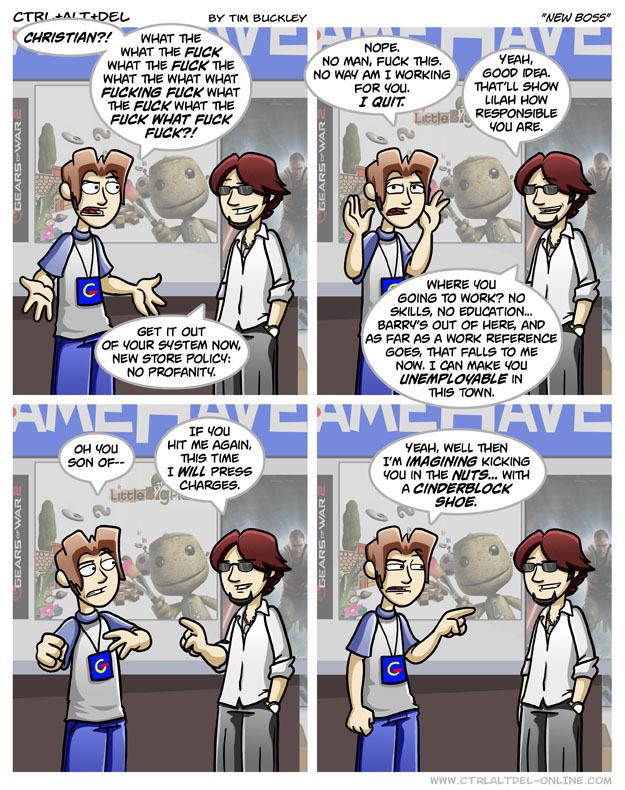 First Previous Random Next Last | 3 Share You are currently browsing the archive for Ctrl Alt Del First Previous Archive Random Next Last | 3 Share Tweet 24 New boss September 3, 2008 by Tim Subscribe Notify of new follow-up comments new replies to my comments Label {} [+] Name* Email* Δ Label {} [+] Name* Email* Δ 3 Comments Oldest Newest Most Voted Inline Feedbacks View all comments Verycool 1 year ago Damn chrisshut Verycool 1 year ago Gosh damn chrisshit I’m not Christian but I bet Christianity is disappointed with you 3DS 11 months ago get christian OUT of here..