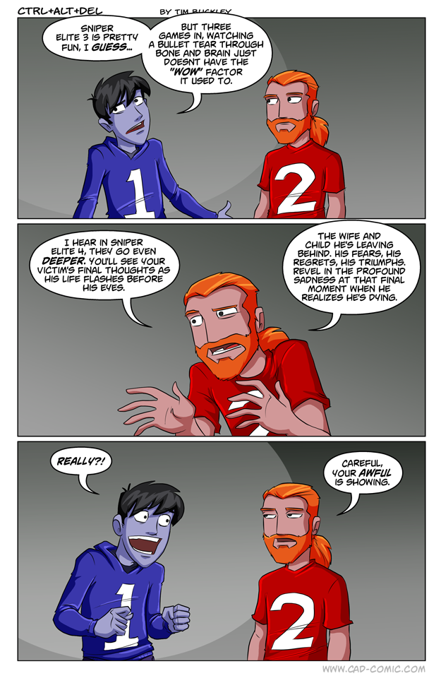 First Previous Random Next Last | 1 Share You are currently browsing the archive for Ctrl Alt Del First Previous Archive Random Next Last | 1 Share Tweet 24 Next July 11, 2014 by Tim Subscribe Notify of new follow-up comments new replies to my comments Label {} [+] Name* Email* Δ Label {} [+] Name* Email* Δ 1 Comment Oldest Newest Most Voted Inline Feedbacks View all comments Verycool 1 year ago Now we have sniper elite 5 and a vr game wonder when we’ll get the sniper elite 6