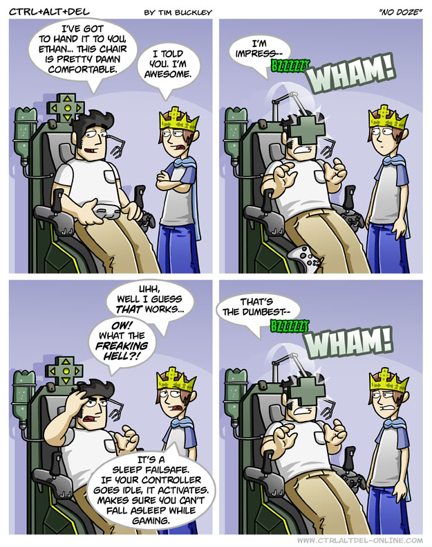 First Previous Random Next Last | 1 Share You are currently browsing the archive for Ctrl Alt Del First Previous Archive Random Next Last | 1 Share Tweet 24 No doze January 15, 2007 by Tim Subscribe Notify of new follow-up comments new replies to my comments Label {} [+] Name* Email* Δ Label {} [+] Name* Email* Δ 1 Comment Oldest Newest Most Voted Inline Feedbacks View all comments MidnightDStroyer 7 years ago Yeah, I think you might be able to tone down the sensitivity setting on that a bit, huh?