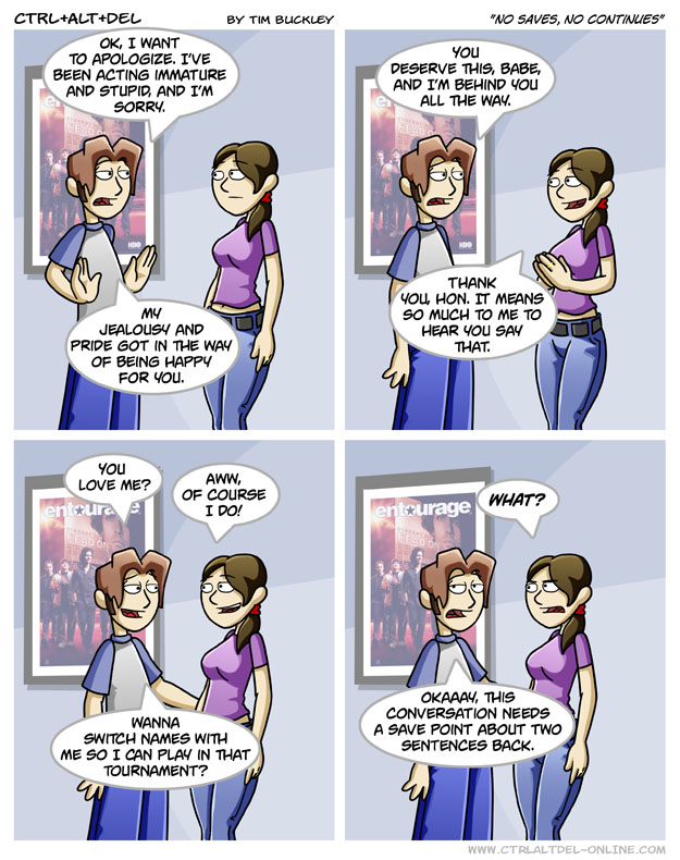 First Previous Random Next Last | 2 Share You are currently browsing the archive for Ctrl Alt Del First Previous Archive Random Next Last | 2 Share Tweet 24 No saves, no continues September 6, 2006 by Tim Subscribe Notify of new follow-up comments new replies to my comments Label {} [+] Name* Email* Δ Label {} [+] Name* Email* Δ 2 Comments Oldest Newest Most Voted Inline Feedbacks View all comments MidnightDStroyer 7 years ago Forget it Ethan. You lose against *this* boss fight, you go back to the beginning & start from scratch. Dialgalith 4 years ago I’ll clear this with no continues!