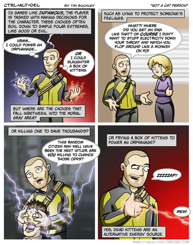 IIRC that game had an unusually bad implementation of an alignment meter; you got powers for being good or evil, and nothing if you were neutral. And given that the “choices” were all binary, you weren’t actually making dozens of choices, like it was promoted as, you would actually make one choice that you would confirm dozens of times. It’s not uncommon to decide “I’ll play an evil character this time”, sure, but it’s rarely so strongly enforced by game mechanics.
