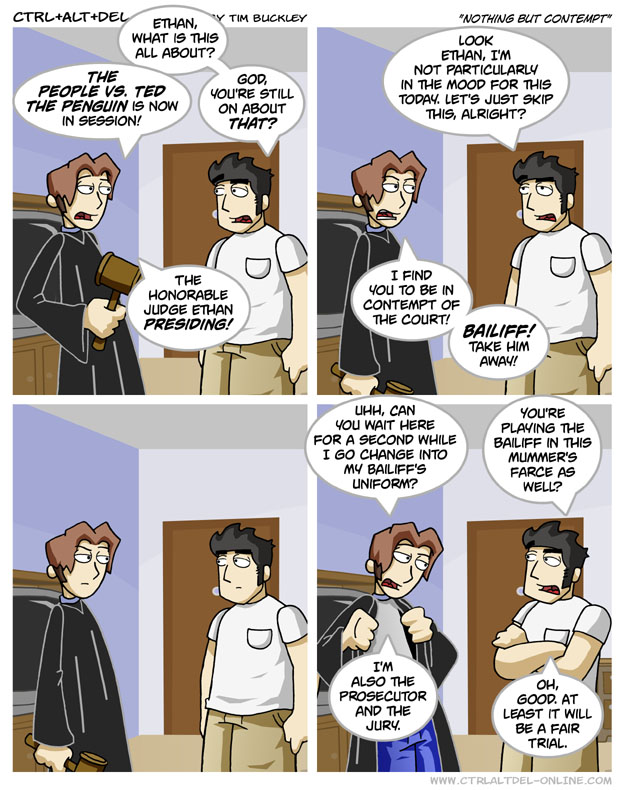 First Previous Random Next Last | 1 Share You are currently browsing the archive for Ctrl Alt Del First Previous Archive Random Next Last | 1 Share Tweet 24 Nothing but contempt June 4, 2004 by Tim Subscribe Notify of new follow-up comments new replies to my comments Label {} [+] Name* Email* Δ Label {} [+] Name* Email* Δ 1 Comment Oldest Newest Most Voted Inline Feedbacks View all comments Robert 'CockRoach' Archer 1 year ago Sounds like how Trump wants the justice system if he get/got his way