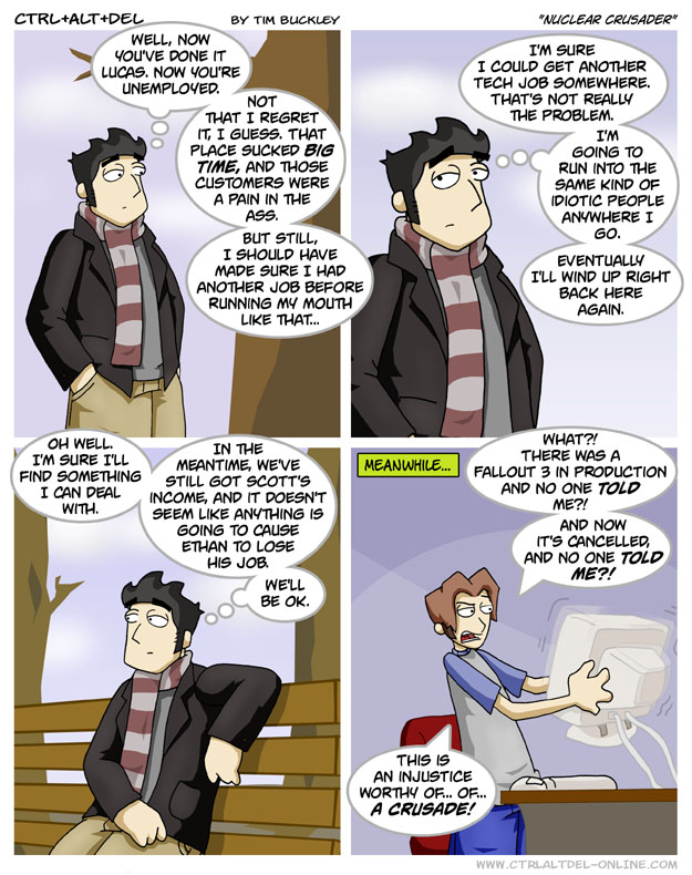 First Previous Random Next Last | 3 Share You are currently browsing the archive for Ctrl Alt Del First Previous Archive Random Next Last | 3 Share Tweet 24 Nuclear crusader February 27, 2004 by Tim Subscribe Notify of new follow-up comments new replies to my comments Label {} [+] Name* Email* Δ Label {} [+] Name* Email* Δ 3 Comments Oldest Newest Most Voted Inline Feedbacks View all comments Rie 2 years ago this.. certainly aged Omegasonic2000 2 years ago Me looking at the fact we’re currently standing at Fallout 76: Anton Sherwood 9 months ago Reply to Omegasonic2000 My blog gets bot comments like “I’m reading your blog on my new iPhone 4!”