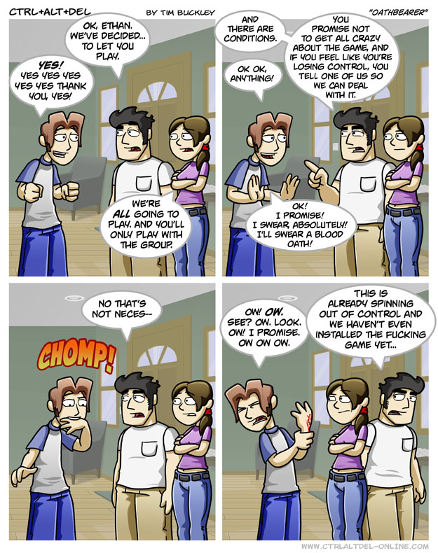 First Previous Random Next Last | 2 Share You are currently browsing the archive for Ctrl Alt Del First Previous Archive Random Next Last | 2 Share Tweet 24 Oathbearer December 14, 2007 by Tim Subscribe Notify of new follow-up comments new replies to my comments Label {} [+] Name* Email* Δ Label {} [+] Name* Email* Δ 2 Comments Oldest Newest Most Voted Inline Feedbacks View all comments SilverXSnake 8 years ago Ethan is like a kid getting his parents to take him to Disney land… Arceus 7 years ago Reply to SilverXSnake Did someone say “DISNEY LAND”?