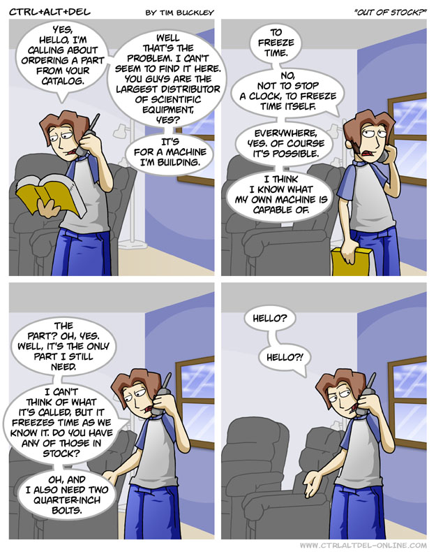 First Previous Random Next Last | 2 Share You are currently browsing the archive for Ctrl Alt Del First Previous Archive Random Next Last | 2 Share Tweet 24 Out of stock? November 20, 2004 by Tim Subscribe Notify of new follow-up comments new replies to my comments Label {} [+] Name* Email* Δ Label {} [+] Name* Email* Δ 2 Comments Oldest Newest Most Voted Inline Feedbacks View all comments MidnightDStroyer 7 years ago Flux capacitor…It’s called a flux capacitor. Accept no substitutes. Bogsalt 4 months ago Reply to MidnightDStroyer If Ethan spent more time watching movies instead of playing video games, he would know that.
