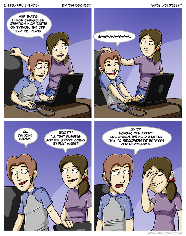 First Previous Random Next Last | 1 Share You are currently browsing the archive for Ctrl Alt Del First Previous Archive Random Next Last | 1 Share Tweet 24 Pace yourself July 25, 2011 by Tim Subscribe Notify of new follow-up comments new replies to my comments Label {} [+] Name* Email* Δ Label {} [+] Name* Email* Δ 1 Comment Oldest Newest Most Voted Inline Feedbacks View all comments MidnightDStroyer 7 years ago So…Ethan has to go change his shorts *again*?