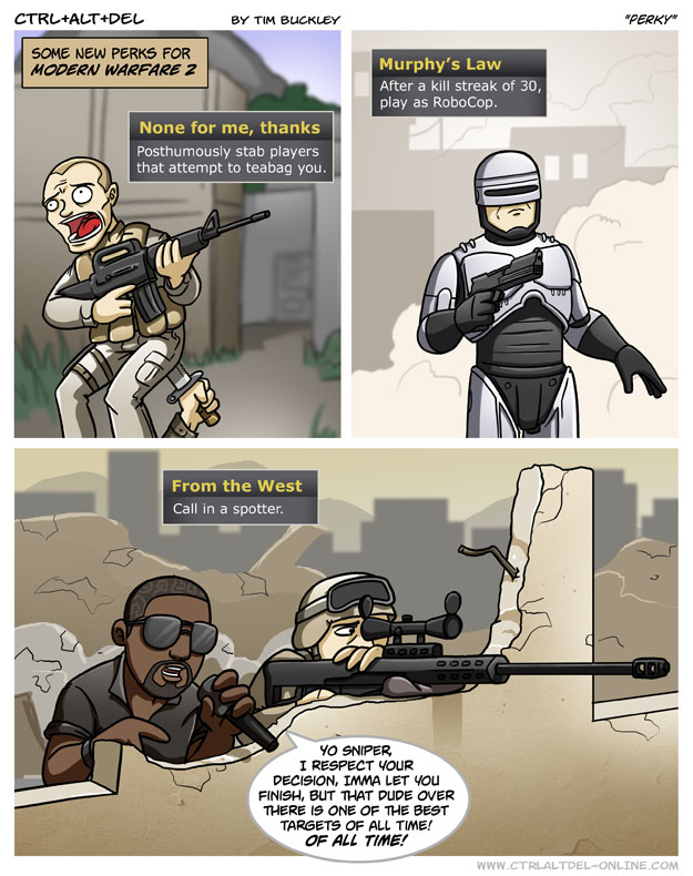 First Previous Random Next Last | 1 Share You are currently browsing the archive for Ctrl Alt Del First Previous Archive Random Next Last | 1 Share Tweet 24 Perky September 18, 2009 by Tim Subscribe Notify of new follow-up comments new replies to my comments Label {} [+] Name* Email* Δ Label {} [+] Name* Email* Δ 1 Comment Oldest Newest Most Voted Inline Feedbacks View all comments Dekker451 2 months ago “None for me, thanks” should be a real ability in every shooter.