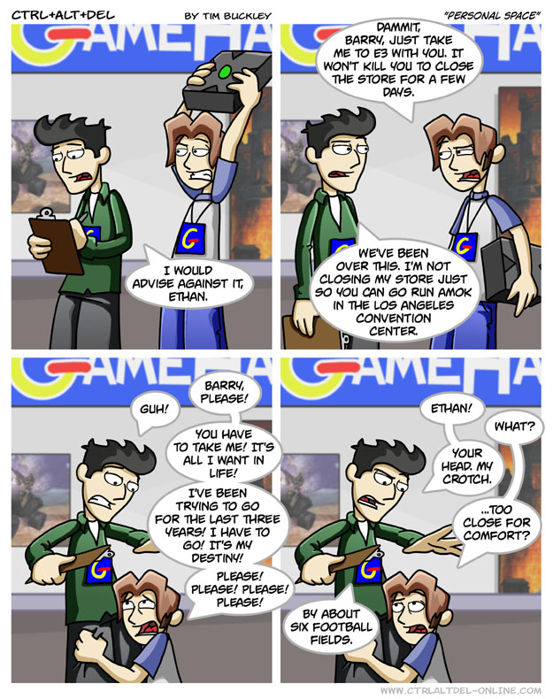 First Previous Random Next Last | 2 Share You are currently browsing the archive for Ctrl Alt Del First Previous Archive Random Next Last | 2 Share Tweet 24 Personal space May 8, 2006 by Tim Subscribe Notify of new follow-up comments new replies to my comments Label {} [+] Name* Email* Δ Label {} [+] Name* Email* Δ 2 Comments Oldest Newest Most Voted Inline Feedbacks View all comments Arceus 7 years ago Barry’s got some serious tolerance to be able to put up with Ethan without losing his temper. Toby 4 months ago Barry’s got some serious tolerance for not folding in like 2 seconds max #ImGonnaHumpEthan2025