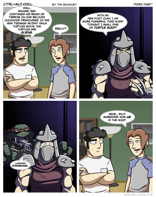 First Previous Random Next Last | 1 Share You are currently browsing the archive for Ctrl Alt Del First Previous Archive Random Next Last | 1 Share Tweet 24 Pizza time! March 23, 2012 by Tim Subscribe Notify of new follow-up comments new replies to my comments Label {} [+] Name* Email* Δ Label {} [+] Name* Email* Δ 1 Comment Oldest Newest Most Voted Inline Feedbacks View all comments Dingle Bloopynoop 3 years ago I’m so glad that he ended up fixing that major fuck up, like the sonic thing in retrospect…