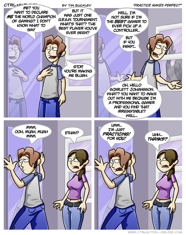 First Previous Random Next Last | 3 Share You are currently browsing the archive for Ctrl Alt Del First Previous Archive Random Next Last | 3 Share Tweet 24 Practice makes perfect July 12, 2006 by Tim Subscribe Notify of new follow-up comments new replies to my comments Label {} [+] Name* Email* Δ Label {} [+] Name* Email* Δ 3 Comments Oldest Newest Most Voted Inline Feedbacks View all comments Human #27 7 years ago Zeke in that second panel… douglas 5 years ago Reply to Human #27 oh my god i didint catch that thank you Maximum 3 years ago Reply to douglas Yeah same 😉