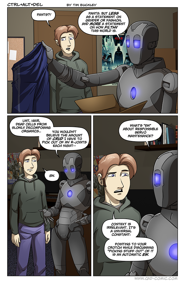 Or, and hear me out, Tim realized it’s faster and easier to draw a pair of pants than detailed servo joints and knew that robo dong jokes are comedic gold.