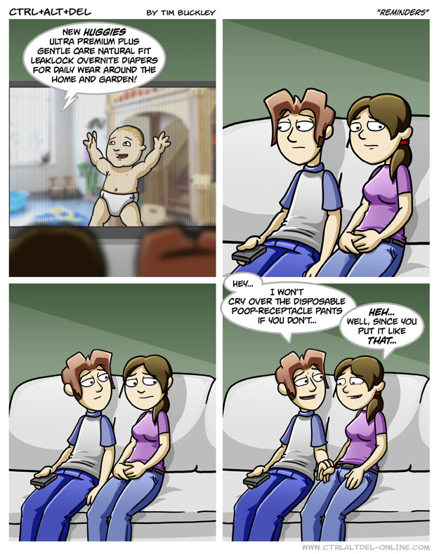 First Previous Random Next Last | 1 Share You are currently browsing the archive for Ctrl Alt Del First Previous Archive Random Next Last | 1 Share Tweet 24 Reminders July 9, 2008 by Tim Subscribe Notify of new follow-up comments new replies to my comments Label {} [+] Name* Email* Δ Label {} [+] Name* Email* Δ 1 Comment Oldest Newest Most Voted Inline Feedbacks View all comments Jaco823 2 years ago My wife had a miscarriage a few years before we met. She couldn’t watch anything with pregnancy or see commercials without being angry and upset. It wasn’t until we had our son that she got over it.