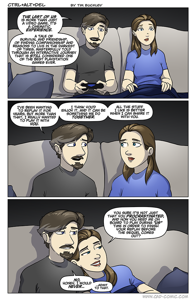 Some games just aren’t fun to watch someone else play, so it’s got to be the right kind of game, and I think TLOU may fit the bill. To this day the experience of that game has left an impression on me, but back in 2013 I didn’t know it was going to be such a great game until I was already too far into it to ask her to jump aboard and play through it with me.