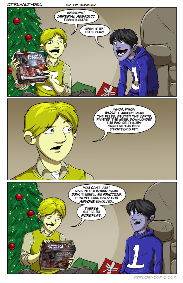 First Previous Random Next Last | 2 Share You are currently browsing the archive for Ctrl Alt Del First Previous Archive Random Next Last | 2 Share Tweet 24 Ritual December 29, 2014 by Tim Subscribe Notify of new follow-up comments new replies to my comments Label {} [+] Name* Email* Δ Label {} [+] Name* Email* Δ 2 Comments Oldest Newest Most Voted Inline Feedbacks View all comments MidnightDStroyer 7 years ago Lets not get into the “when the rubber meets the road” simile, shall we? 0.o Just a random commenter 3 years ago Reply to MidnightDStroyer Ah, yes, those pesky road rubbers, rubbing roads everywhere.