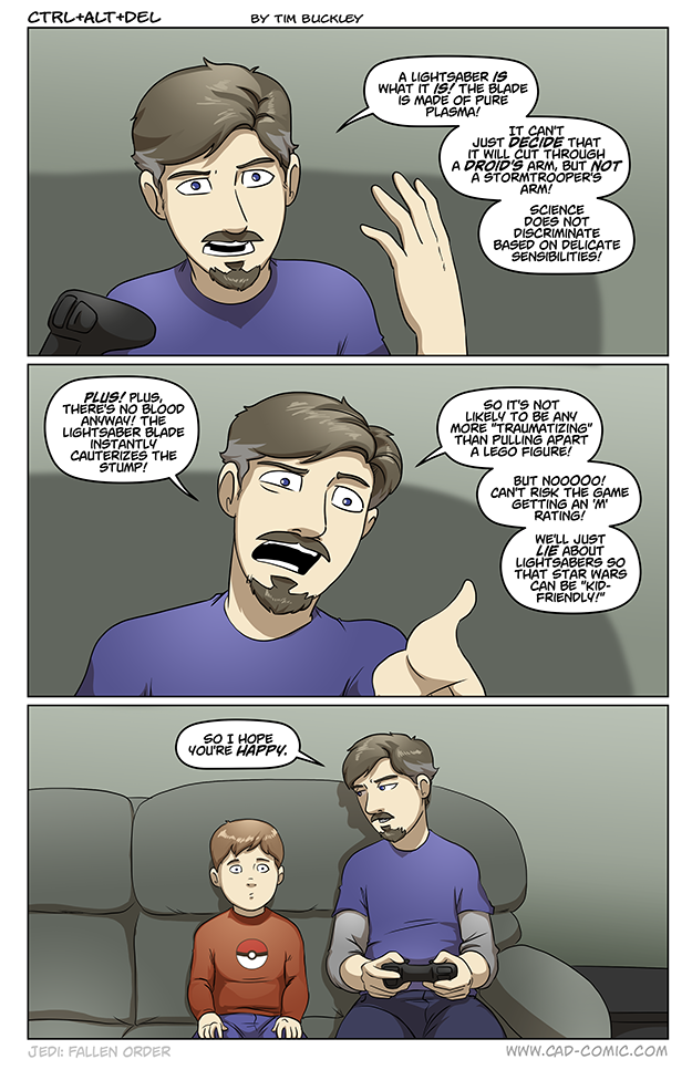 But the nerd in me screams every time I see Cal slice through a Stormtrooper and no limbs go flying.