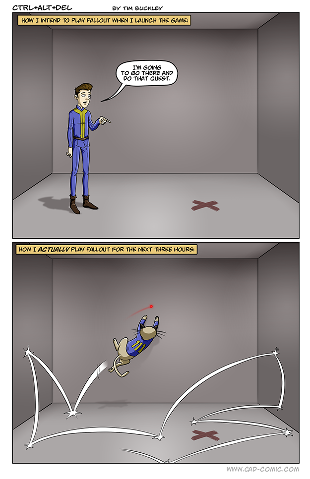 First Previous Random Next Last | 4 Share You are currently browsing the archive for Ctrl Alt Del First Previous Archive Random Next Last | 4 Share Tweet 24 Shiny November 20, 2015 by Tim Subscribe Notify of new follow-up comments new replies to my comments Label {} [+] Name* Email* Δ Label {} [+] Name* Email* Δ 4 Comments Oldest Newest Most Voted Inline Feedbacks View all comments Urzole_Narx 8 years ago Shiny! Griever 7 years ago This is every RPG i ever play. Only chumps play the story line without being ridiculously over-leveled. Richard Weatherfield 3 years ago Reply to Griever You callin’ me a chump, bro!? 😛 Michelle J Caboose 2 months ago Reply to Griever Same. I can’t play through the main quest without stopping for every single sidequest. I will even abandon the main story to go LOOK for sidequests, just to make sure I don’t miss any.