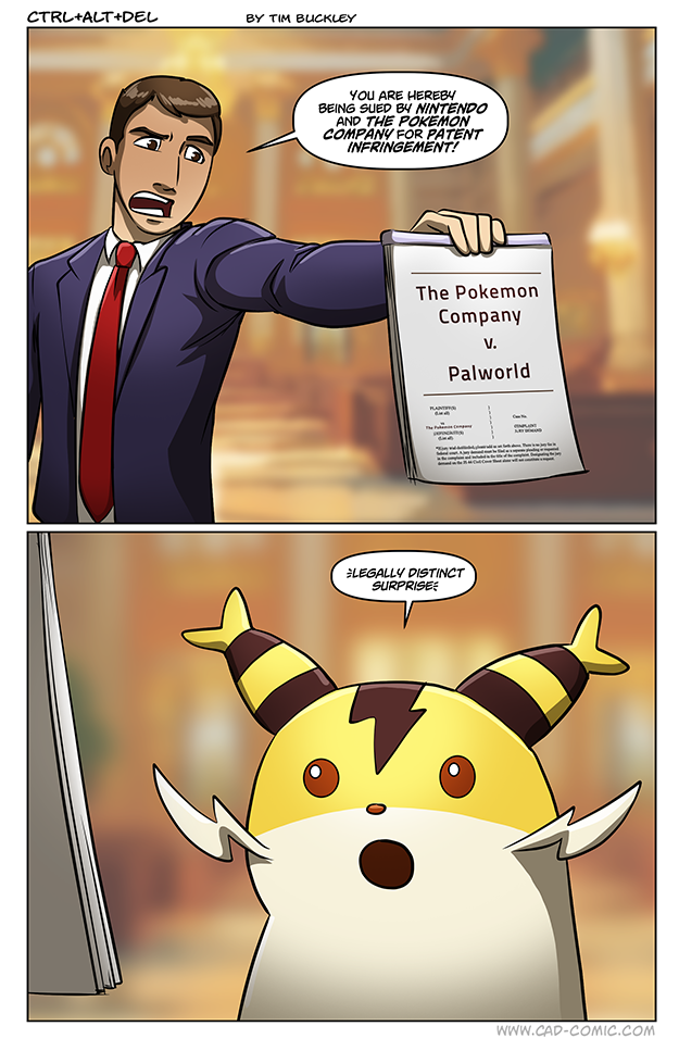 Nobody saw this coming, right? Actually that’s only partially in jest– I genuinely expected the lawsuit to be for copyright infringement based on the “Pal’s” similarity to their Pokemon counterparts. Instead it’s patent infringement, which sounds to me like they gave up on the copyright approach and just tried to find something to sue for. Palworld’s explosion into the cultural zeitgeist earlier this year probably bruised Pokemon’s ego a bit, and you know how much Nintendo loves to put their lawyers to work.