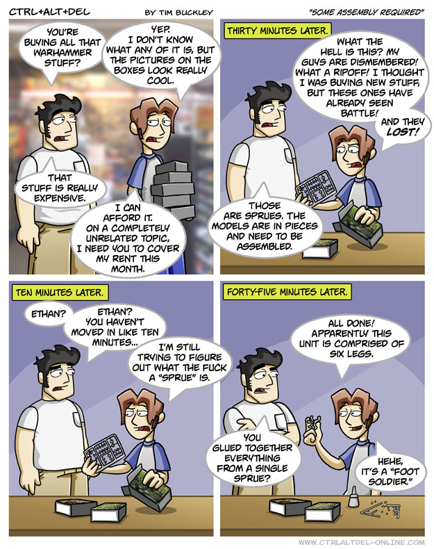First Previous Random Next Last | 3 Share You are currently browsing the archive for Ctrl Alt Del First Previous Archive Random Next Last | 3 Share Tweet 24 Some assembly required November 10, 2006 by Tim Subscribe Notify of new follow-up comments new replies to my comments Label {} [+] Name* Email* Δ Label {} [+] Name* Email* Δ 3 Comments Oldest Newest Most Voted Inline Feedbacks View all comments MidnightDStroyer 7 years ago Sooo, is that battle unit referred to as “Two Yards?” Heh! Six Feet? Two Yards? Heh! I’ll just sit in the corner over here… douglas 5 years ago Reply to MidnightDStroyer jesus christ, arceous isn’t even with you this time TuwitE 4 years ago Reply to douglas Damn you didn’t need to kill him though~~