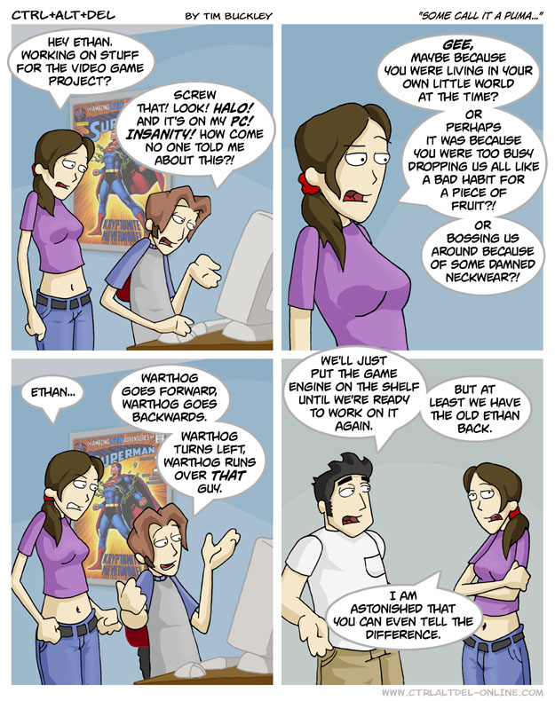 First Previous Random Next Last | 2 Share You are currently browsing the archive for Ctrl Alt Del First Previous Archive Random Next Last | 2 Share Tweet 24 Some call it a puma October 3, 2003 by Tim Subscribe Notify of new follow-up comments new replies to my comments Label {} [+] Name* Email* Δ Label {} [+] Name* Email* Δ 2 Comments Oldest Newest Most Voted Inline Feedbacks View all comments Barrenechea 7 years ago Another RvB reference. Nice! Random guy 7 years ago [spoiler alert] Where the end began