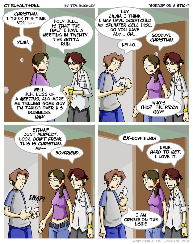 First Previous Random Next Last | 1 Share You are currently browsing the archive for Ctrl Alt Del First Previous Archive Random Next Last | 1 Share Tweet 24 Sorrow on a stick April 26, 2004 by Tim Subscribe Notify of new follow-up comments new replies to my comments Label {} [+] Name* Email* Δ Label {} [+] Name* Email* Δ 1 Comment Oldest Newest Most Voted Inline Feedbacks View all comments princessrosalina 6 months ago when lilah lost her pigtails an angels wings were brutally cut off💔