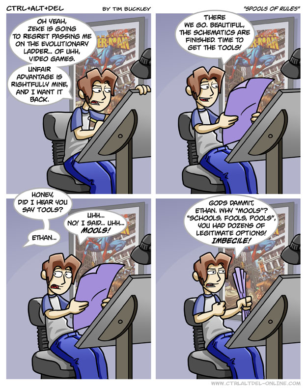 First Previous Random Next Last | 3 Share You are currently browsing the archive for Ctrl Alt Del First Previous Archive Random Next Last | 3 Share Tweet 24 Spools of rules April 11, 2007 by Tim Subscribe Notify of new follow-up comments new replies to my comments Label {} [+] Name* Email* Δ Label {} [+] Name* Email* Δ 3 Comments Oldest Newest Most Voted Inline Feedbacks View all comments Doctor Disaster 5 years ago Spools of rules that accumale in pools for schools to use as tools in their creation of ghouls. El Guero Caliente 4 years ago Reply to Doctor Disaster Fools! Kazzie 2 years ago Reply to El Guero Caliente Fools play Boules in hope of winning Jewels. It’s not cool.