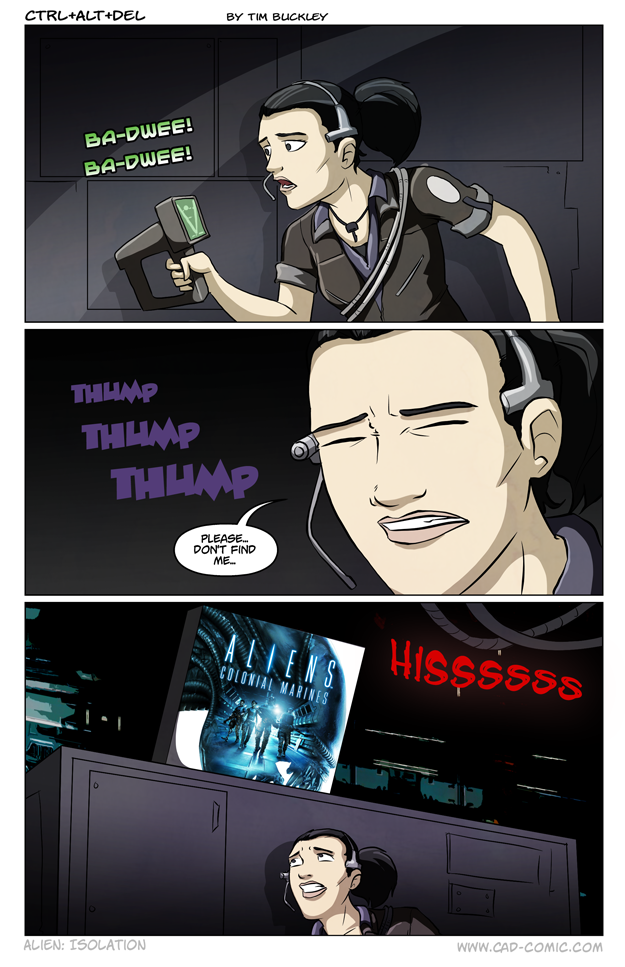 First Previous Random Next Last | 2 Share You are currently browsing the archive for Ctrl Alt Del First Previous Archive Random Next Last | 2 Share Tweet 24 Survive the horror October 8, 2014 by Tim Subscribe Notify of new follow-up comments new replies to my comments Label {} [+] Name* Email* Δ Label {} [+] Name* Email* Δ 2 Comments Oldest Newest Most Voted Inline Feedbacks View all comments Him. 7 years ago The feeling when the game itself is more terrifying than the alien horrors within MidnightDStroyer 7 years ago I kind of feel like that when playing Doom 3.