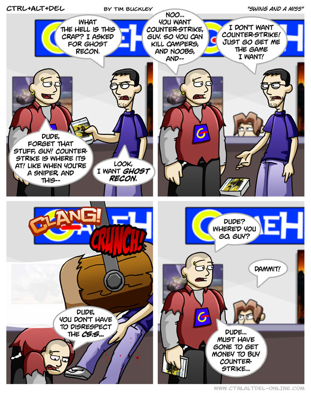 First Previous Random Next Last | 1 Share You are currently browsing the archive for Ctrl Alt Del First Previous Archive Random Next Last | 1 Share Tweet 24 Swing and a miss May 3, 2006 by Tim Subscribe Notify of new follow-up comments new replies to my comments Label {} [+] Name* Email* Δ Label {} [+] Name* Email* Δ 1 Comment Oldest Newest Most Voted Inline Feedbacks View all comments Poe-Etic 5 years ago And I thought I was obsessed when it came to Resident Evil. Damn, dude, guy.