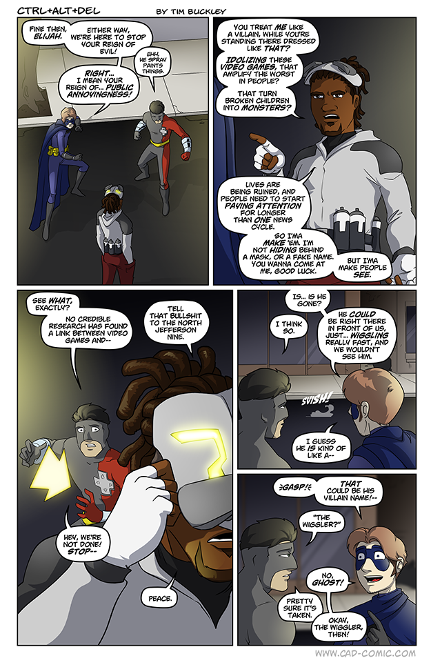 Love where this is going. Eli’s not *really* a villain; he’s got a cause of his own and is trying to make a change. Misguided, yes, but it’s hard to argue and fight with someone who believes, passionately, that they’re doing the right thing. I’m kind of afraid that the Nine are nine victims of a school shooting, or something like that. While violent games don’t cause violent behavior in most kids, the argument can be made that for individuals who are already mentally unstable or have a warped perspective due to abuse, it can give continual positive feedback to… Read more »