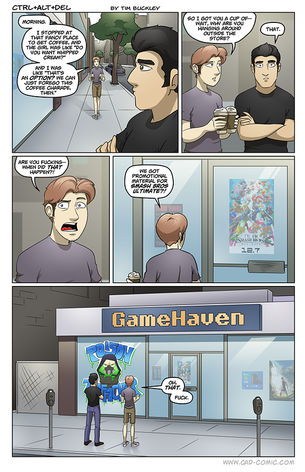 Ah, that explains a lot. I come here from your Facebook post, which, of course, is the URL with the comic name. I’ll have to snitch to coming from a bookmark of the main page…