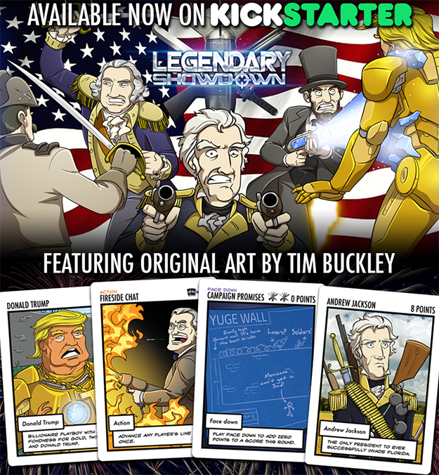 Nearly a hundred cards of new, original art later, Legendary Showdown: Presidential Edition is now available for backing on Kickstarter! It can be played by itself, or combined with any previous iterations of Legendary Showdown (in case you wanted to see if Chef Brian or Abraham Lincoln would win in a fight!)