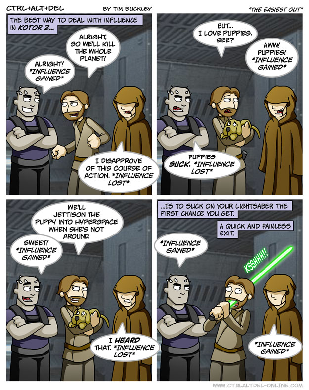 First Previous Random Next Last | 2 Share You are currently browsing the archive for Ctrl Alt Del First Previous Archive Random Next Last | 2 Share Tweet 24 The easiest out February 19, 2005 by Tim Subscribe Notify of new follow-up comments new replies to my comments Label {} [+] Name* Email* Δ Label {} [+] Name* Email* Δ 2 Comments Oldest Newest Most Voted Inline Feedbacks View all comments Wumbo 5 years ago Sith: 1 Jedi: 0 Maximum 3 years ago Reply to Wumbo Nnnnnnnoooooooooo!!!!!!!!!!!!!!!!!!!!!