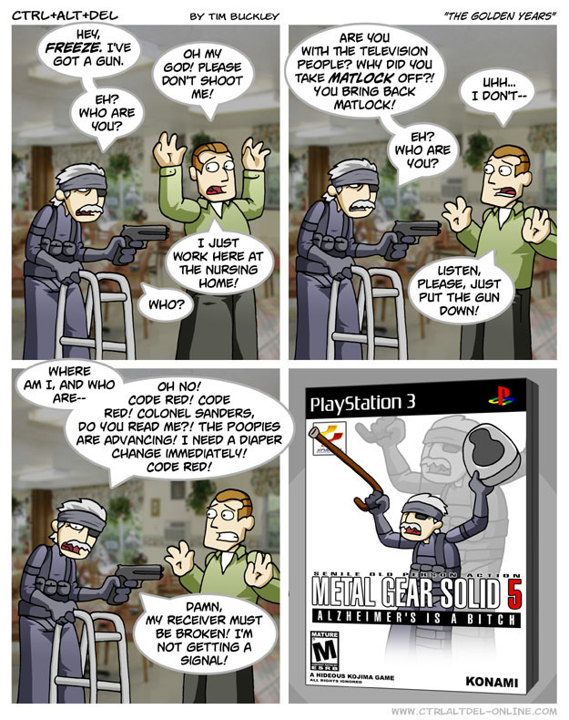 First Previous Random Next Last | 1 Share You are currently browsing the archive for Ctrl Alt Del First Previous Archive Random Next Last | 1 Share Tweet 24 The golden years September 23, 2005 by Tim Subscribe Notify of new follow-up comments new replies to my comments Label {} [+] Name* Email* Δ Label {} [+] Name* Email* Δ 1 Comment Oldest Newest Most Voted Inline Feedbacks View all comments MonadoBoy778 6 years ago Metal Gear Solid 5: The Phantom Memories