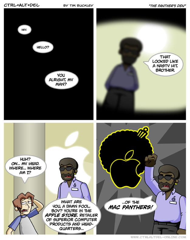 First Previous Random Next Last | 1 Share You are currently browsing the archive for Ctrl Alt Del First Previous Archive Random Next Last | 1 Share Tweet 24 The panther’s den October 11, 2004 by Tim Subscribe Notify of new follow-up comments new replies to my comments Label {} [+] Name* Email* Δ Label {} [+] Name* Email* Δ 1 Comment Oldest Newest Most Voted Inline Feedbacks View all comments Him. 8 years ago *X file theme plays in background*