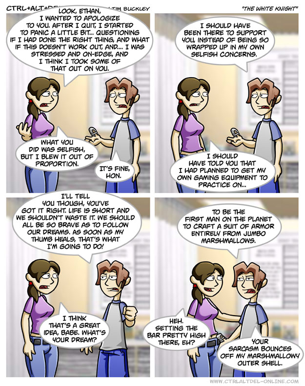 First Previous Random Next Last | 5 Share You are currently browsing the archive for Ctrl Alt Del First Previous Archive Random Next Last | 5 Share Tweet 24 The white knight December 22, 2006 by Tim Subscribe Notify of new follow-up comments new replies to my comments Label {} [+] Name* Email* Δ Label {} [+] Name* Email* Δ 5 Comments Oldest Newest Most Voted Inline Feedbacks View all comments Hamstermer 8 years ago Sweet INSERTDIETY and all that is INSERTADJECTIVE! A man with a suit of sweets! jonisnotameme 7 years ago Reply to Hamstermer A sweetheart with a suit of sweets MidnightDStroyer 7 years ago Reply to Hamstermer YouTube – /watch?v=PX_HljAELcA Sorry…I couldn’t resist that. ACK! 4 years ago Reply to Hamstermer “Gozer” and “gooey”. That one n00b 1 year ago That’d be a pretty sweet set of armor (bu-dum-tss), at least until you sweat or it starts raining…