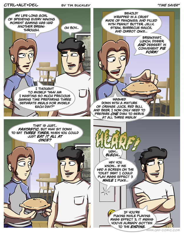First Previous Random Next Last | 2 Share You are currently browsing the archive for Ctrl Alt Del First Previous Archive Random Next Last | 2 Share Tweet 24 Time saver March 14, 2012 by Tim Subscribe Notify of new follow-up comments new replies to my comments Label {} [+] Name* Email* Δ Label {} [+] Name* Email* Δ 2 Comments Oldest Newest Most Voted Inline Feedbacks View all comments Poe-Etic 5 years ago So, was he puking because of the combination or because he ate too much in one sitting? Shawn 5 years ago Reply to Poe-Etic Yes.