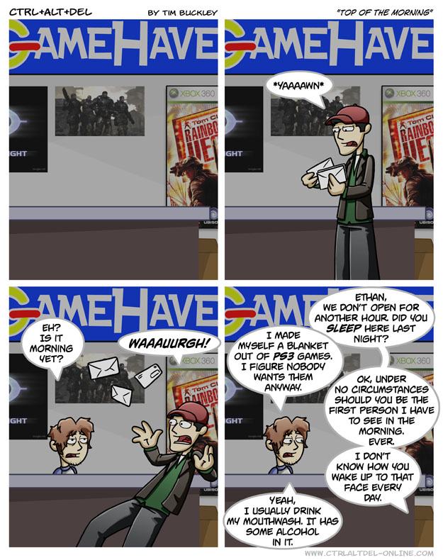 First Previous Random Next Last | 2 Share You are currently browsing the archive for Ctrl Alt Del First Previous Archive Random Next Last | 2 Share Tweet 24 Top of the morning December 9, 2006 by Tim Subscribe Notify of new follow-up comments new replies to my comments Label {} [+] Name* Email* Δ Label {} [+] Name* Email* Δ 2 Comments Oldest Newest Most Voted Inline Feedbacks View all comments Sebastian 4 years ago Ethan Cobain Maximum 3 years ago The title: Top of the morning to you…