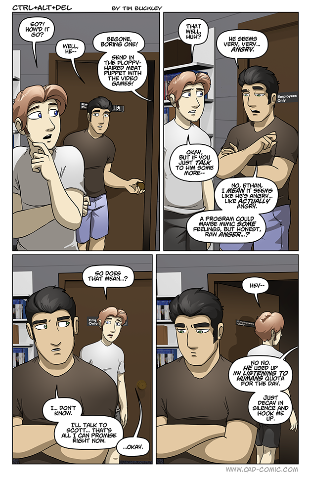 I also like the discussion this story brings. Also, i think Zeke’s reaction is very human in nature, but i also know that Zeke doesn’t seem to be “alive” or with human feelings for long. He’s probably younger than our heroes, so i suppose he hasn’t realized that humans are responsible for their actions (so trying to kill someone equals being arrested). His reaction is due to both limited life experience and logic. At least as far as this comic has shown up to us until now. Zeke already stated that all he did since he was “born” was obeying… Read more »
