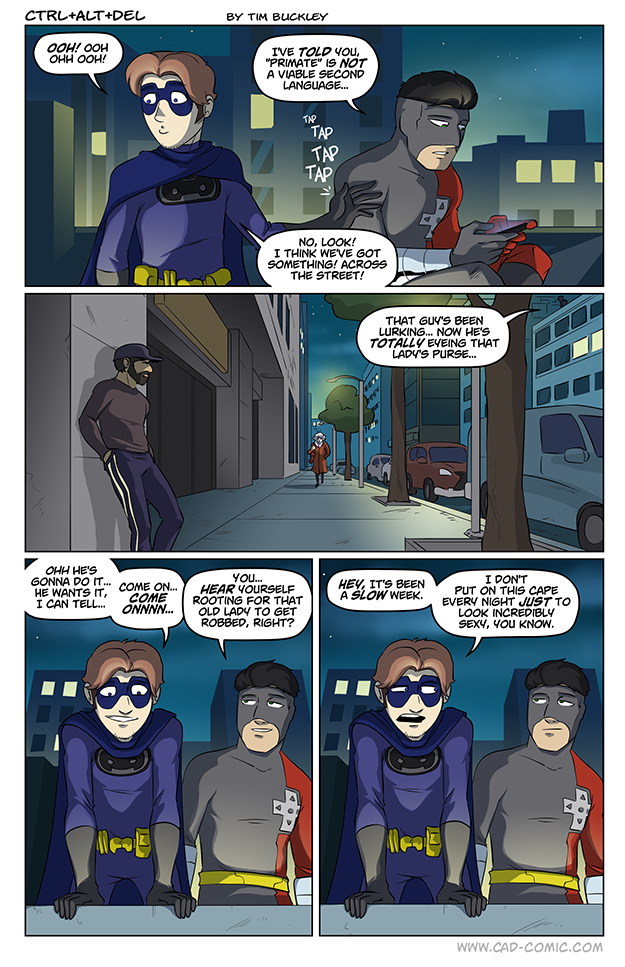 I can just hear the Batman envy in Ethan’s head “Stupid Batman, he’s so lucky that Gotham’s totally infested with crime and up to it’s neck with supervillains. Bet he never has to worry about being bored.”